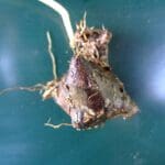 The tubers or nuts are dark brown and rounded. They are similar in shape to chestnuts.