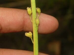 The Flowers and seeds grow on a single stem up to 40cm tall, in balls or egg-shaped growths directly from the stem from 2-6mm.