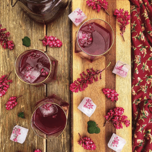 When you’re ready to drink it, mix it up with water and pop in a few beautiful flower ice cubes!