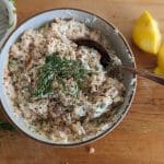 Peel the skin off the smoked mackerel skippers and chop the up really finely (but don’t blend – it’s really tasty when the mackerel is more chunky)