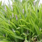 It has bell-like flowers, each flower with 6 blue/lilac petals.