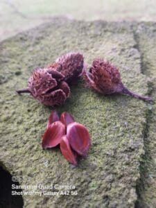If you look around the base of the tree you may see many empty masts from previous years. The masts are egg shaped and bristly and open to reveal 1-3 triangular nuts.