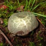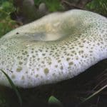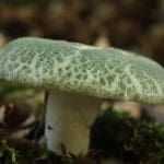 An uncommon member of the Russula family that is found in the late summer and autumn. It has a green cap that has cracks towards the edges and grey or tan spots on the top.