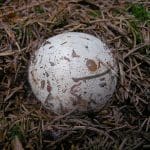 Can also look like a Puffball, Earthball, pictured, or an Amanita egg when in the egg stage.