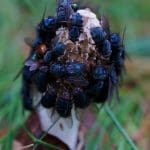 First appearing smooth and olive grey brown to black but this is what’s called the gleba which contains the spores. The gleba attracts flies which spread the spores of the Stinkhorn. they take the gleba with them and leave a white cap with a honeycomb pattern.