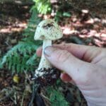 To make ID even harder there are two recognised variants of The False Death Cap, Amanita Citrina variant citrina and Amanita Citrina variant alba. Alba is almost pure white and slightly larger, var. citrina is lemon yellow with pure white veil remnants.