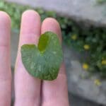 The leaves are heart shaped, glossy and deep green. Very often with white or pale spots or blotches. The leaves are on long stalks and are up to 3-5 in diameter.