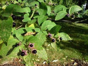 The name Belladonna which means ‘beautiful lady’ in Italian refers to its use as a beauty product. Ladies would drop a preparation of the plant into their eyes to cause their pupils to dilate which was considered attractive but prolonged use can cause blindness.