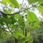 The hermaphrodite flowers are inconspicuous and small. Yellow to green in colour, have four petals and grow in clusters called cymes. They normally appear in May and June.