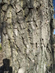 The Black Walnut (Juglans nigra) is another imported species, it’s mostly grown for its timber and it’s less common, its nuts can also be eaten. The Black Walnut has more leaflets which are toothed and the bark is darker in colour.