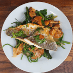 - Add a knob of butter to the pan which you cooked the fish in and add the sea beet leaves.