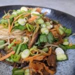 5. Throw in the hydrated noodles and a little splash of the liquid from them (about 2 table spoons of the liquid)