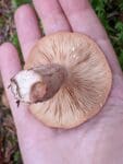 It’s an easy mushroom to miss as they’re quite small, but once you spot one you’ll probably find many more. The caps are a reddish-brown colour with faint darker concentric rings. Another key feature is that in all but the wettest weather the caps have a dry, dull, matt finish. The milk tastes OK initially but gets more and more bitter with time and as I said earlier they taste pretty horrid.