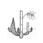 Harvest bamboo shoots by digging around them and cutting them off just above the rhizome.  Clean the shoots and peel the outer sheaths.  As you get closer to the soft edible core, as you remove the sheaths, you’ll notice the bottom of some of the sheaths will be white or a very light colour.  Don’t discard these.  They can be cut from the tough part of the outer sheath and made into Bamboo crisps.