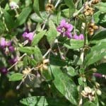 The purple, trumpet-shaped flowers grow in groups of 1-3. Up to 1 cm long they have 5 long, protruding stamens.