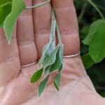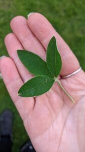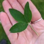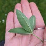 Laburnum leaves are compound and trifoliate i.e. they have three leaflets like a Clover leaf. The leaflets are typically 2–5 cm long. They are medium to dark green and arranged alternately on the stem.