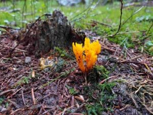 Picture bright orange or orange-yellow, greasy, antler-like branches that occasionally fork near the tips, giving this fascinating fungus its distinctive appearance. As we delve deeper, we’ll uncover its unique features, habitat, and ecological role, shedding light on its prevalence in autumn and its unmistakable distinguishable traits.