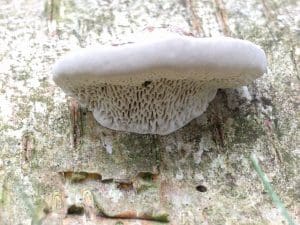 - Appearance: Large, perennial, and woody with a grey to brown upper surface and white pore surface that turns brown when scratched.
