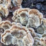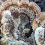 When I first came across this mushroom when running an event in Italy I initially thought ‘ah a turkey tail mushroom’ then I touched it, stepped back and thought ‘what’s going on here’ this is like the baby of a turkey tail and a jelly ear mushroom.