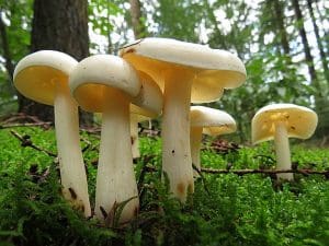 They are saprobic and aren’t too fussy about what they feed on but are more often found in needle and leaf litter near pine trees.