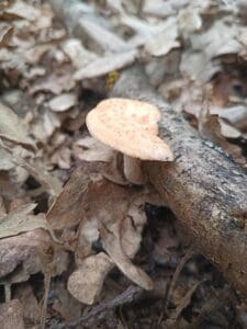 The Tuberous Polypore (Polyporus tuberaster) is a delightful find for me. Known for its edible qualities and distinctive growth habit, this mushroom grows from an underground sclerotium—a hard, tuber-like structure that gives it its name. Found on dead or decaying hardwood, this polypore’s creamy caps and tough, fibrous stem make it stand out during foraging trips.