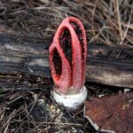 Starfish Fungus (Aseroe rubra) very rare in Britain, similar but has a thicker stem and each tentacle is divided.