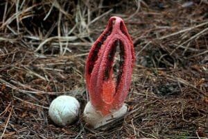 The generic name Clathrus means ‘a cage’, and although not too relevant to Devil’s Fingers it does seem entirely appropriate when applied to Clathrus ruber, the Red Cage Fungus, which is the type species in the same genus.