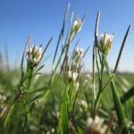 Hairy Bittercress puts up a flower stalk that can reach up to 30 cm in height but is usually much shorter, that produces a cluster of small white flowers.